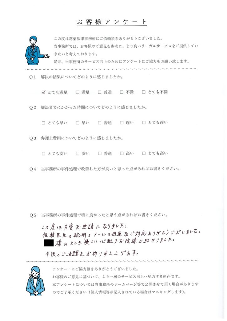 (女性事務員)様のとても優しい心配りお陰様で助かりました。