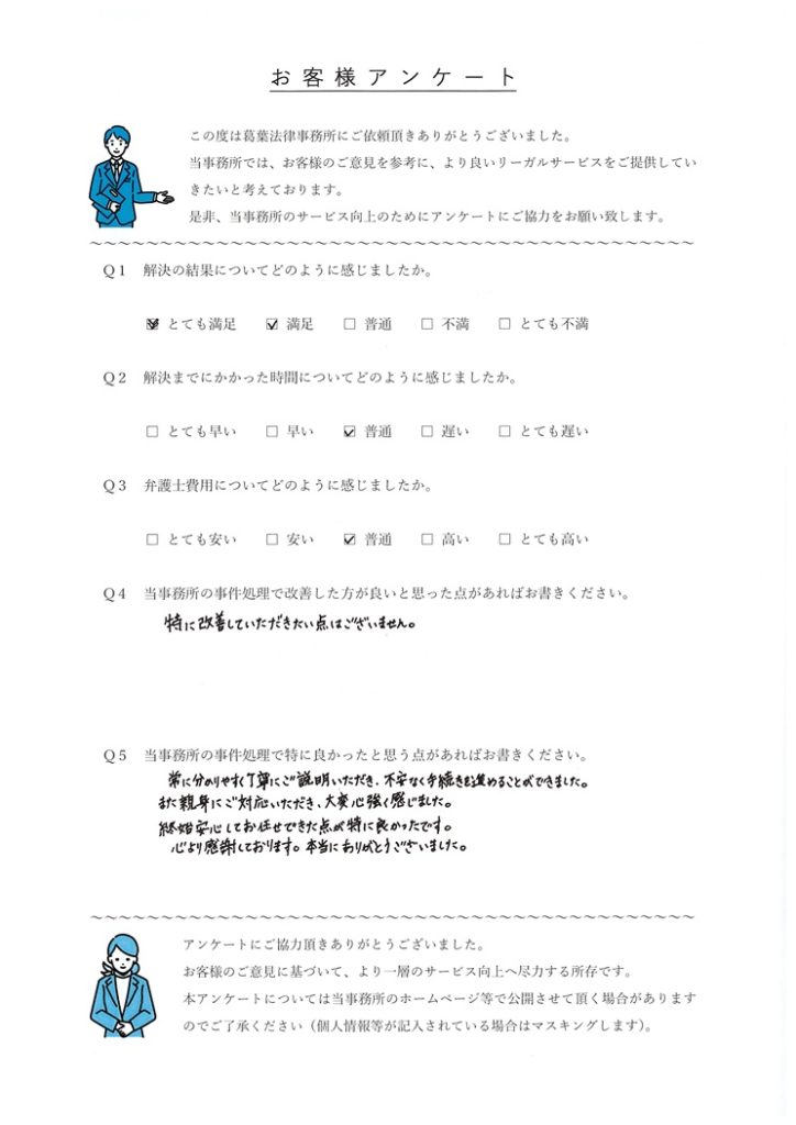 常に分かりやすく丁寧にご説明いただき、不安なく手続きを進めることができました。